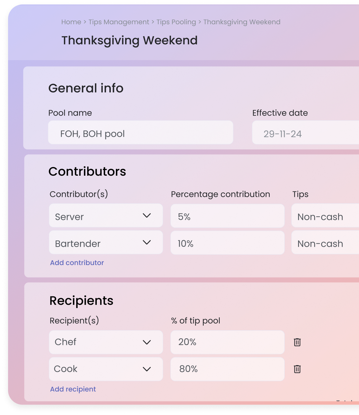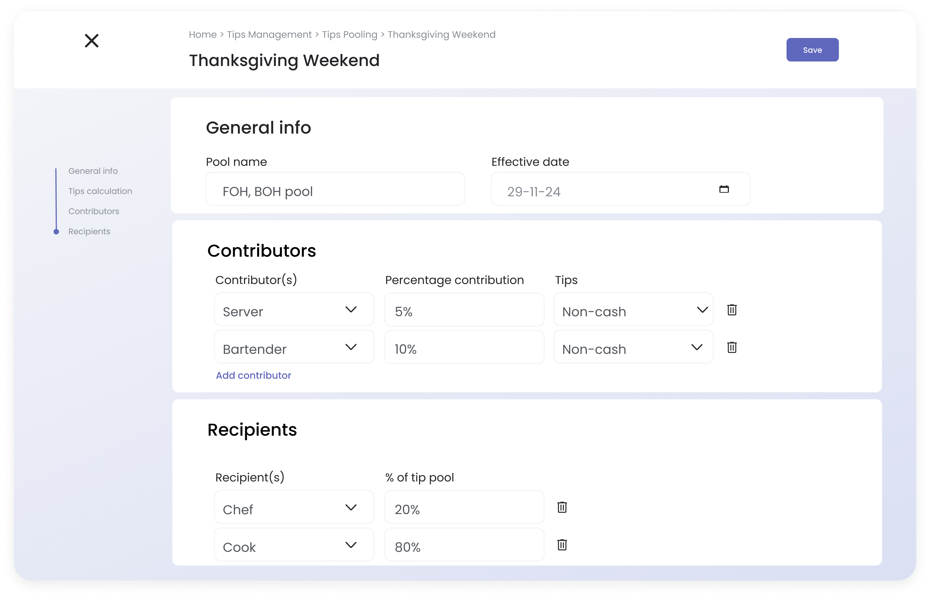 Customize tip pooling rules to fit your staffing needs for easy closeouts